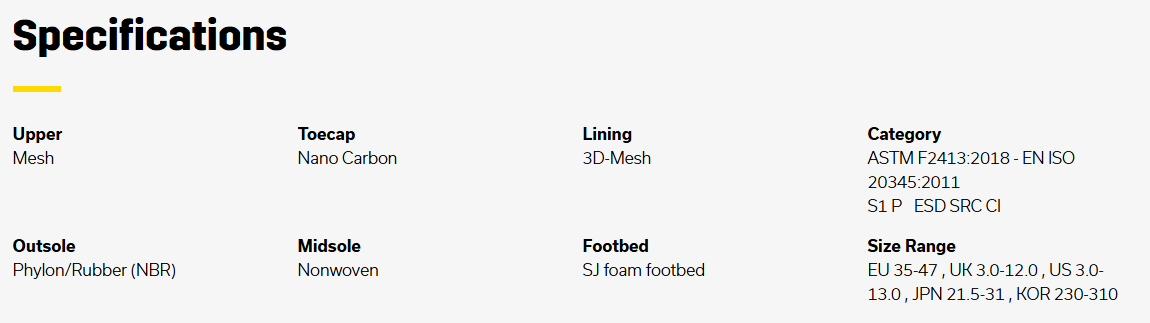 The nano carbon toecap, metalfree and non-conductive, offers unparalleled protection.