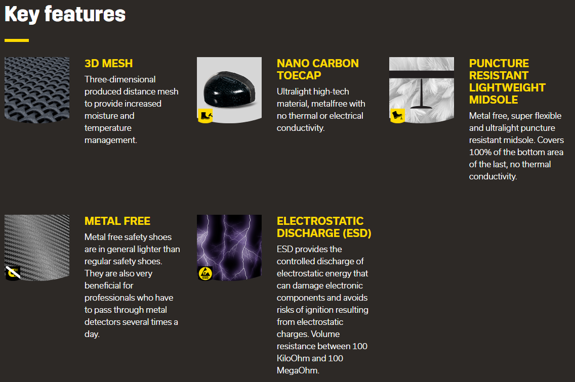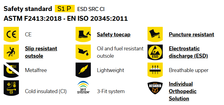 Outsole: Antistatic, slip-resistant, wear-resistant, mineral oil and weak acid resistant