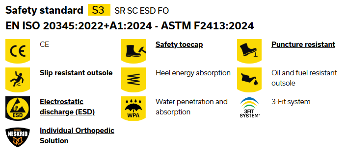 Its steel toe cap and midsole, ESD properties and SR slip-resistant outsole protect you from unexpected hazards,