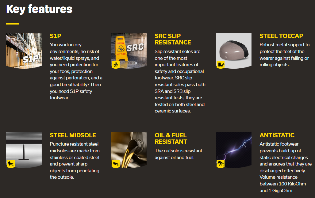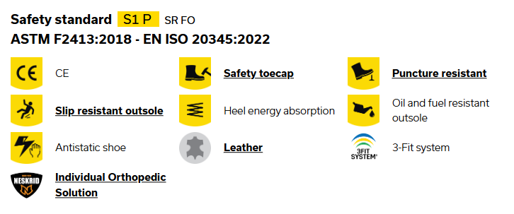Specially designed for dry environments, these shoes offer S1P safety footwear protection, featuring a sturdy steel toecap and puncture-resistant steel midsole.