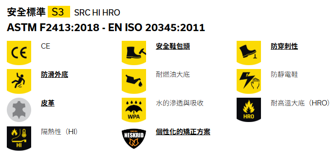 這款鞋採用防靜電結構,可保護您免受靜電火花的傷害,並且耐油耐燃料。